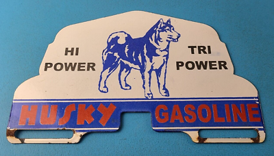 #ad Vintage Husky Gasoline Sign Topper Gas Auto Car Porcelain License Plate Topper: $105.37
